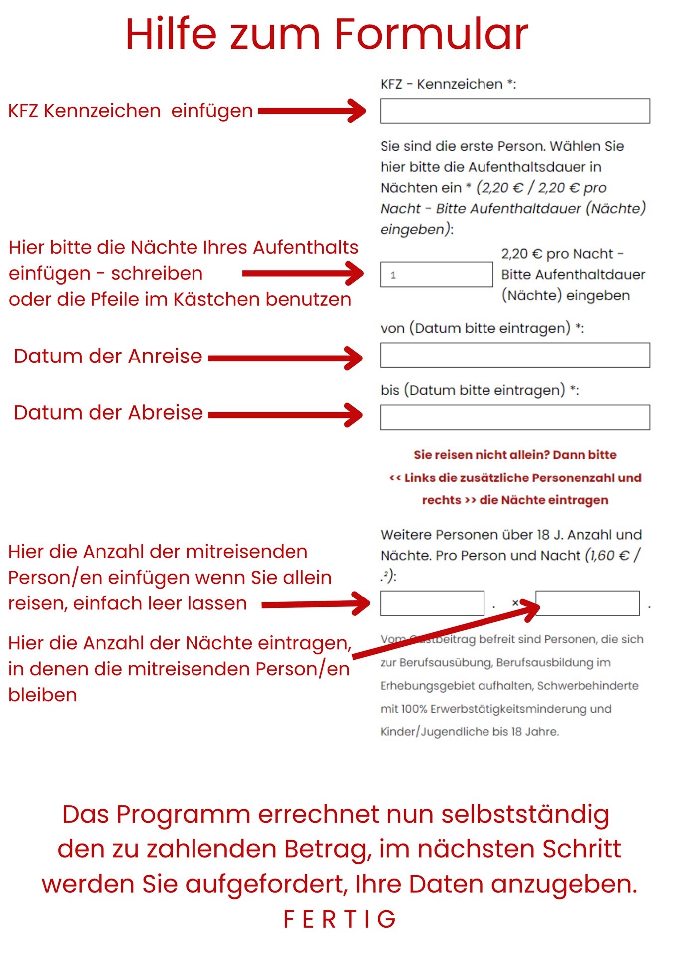 Falls Sie auf Ihrem Smartphone keine E-Mails empfangen können oder aus einem EU Land kommen, bitten wir Sie, die Zahlung und Anmeldung bei der Touristinformation im Haus des Gastes vorzunehmen.